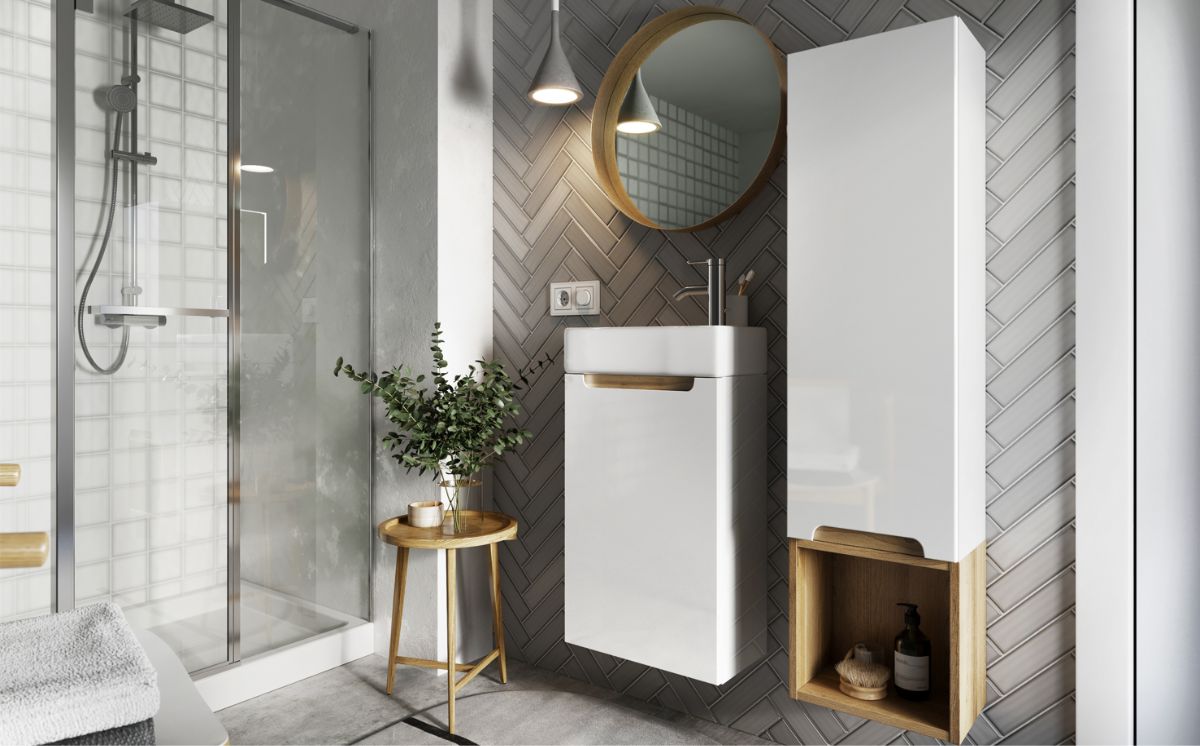 It’s a priority to utilize as much space as possible when dealing with small bathrooms. That’s why, when designing our furniture dedicated to washrooms which do not enjoy an abundance of usable volume, we focus on creating the shallowest cabinets possible while retaining maximum usage comfort we can provide.