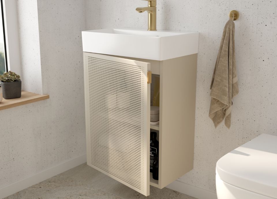 The openwork metal fronts of Doti cabinets are perfect for demanding bathroom environments. They are moisture-resistant, easy to clean, and ensure excellent air circulation. Their powder-coated finish provides exceptional durability and a stylish appearance.