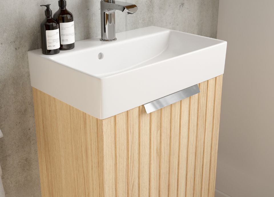 Despite its compact size, the Venezia washbasin provides a high level of comfort for everyday use. It fits Doti D50 and Vetti D50 cabinets.