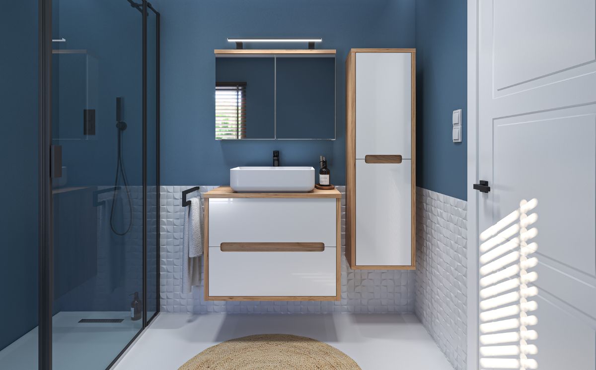 The key decoration of the furniture is a milled handle integrated with a golden oak cover. This is what gives the furniture its allure, attracts the eye and gives it character. NOBU furniture is an excellent choice for modern bathrooms in a cosy style.