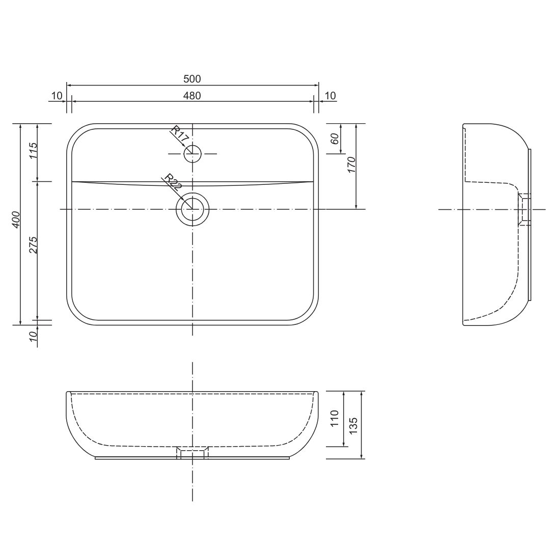 This rectangular countertop washbasin with rounded edges is perfect for bathrooms in a variety of styles. Its high, yet thin rim and rounded edges give the washbasin an interesting and subtle look. The well-shaped bowl ensures complete comfort. This model is made of high-quality white ceramic.