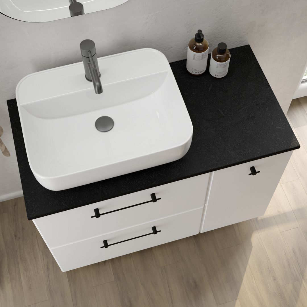 To create a successful design, combine the Avena washbasin with a cabinet and a countertop (composite, postformed, or laminated). If you choose a longer countertop, you can use it to display cosmetics or even decorative items.
