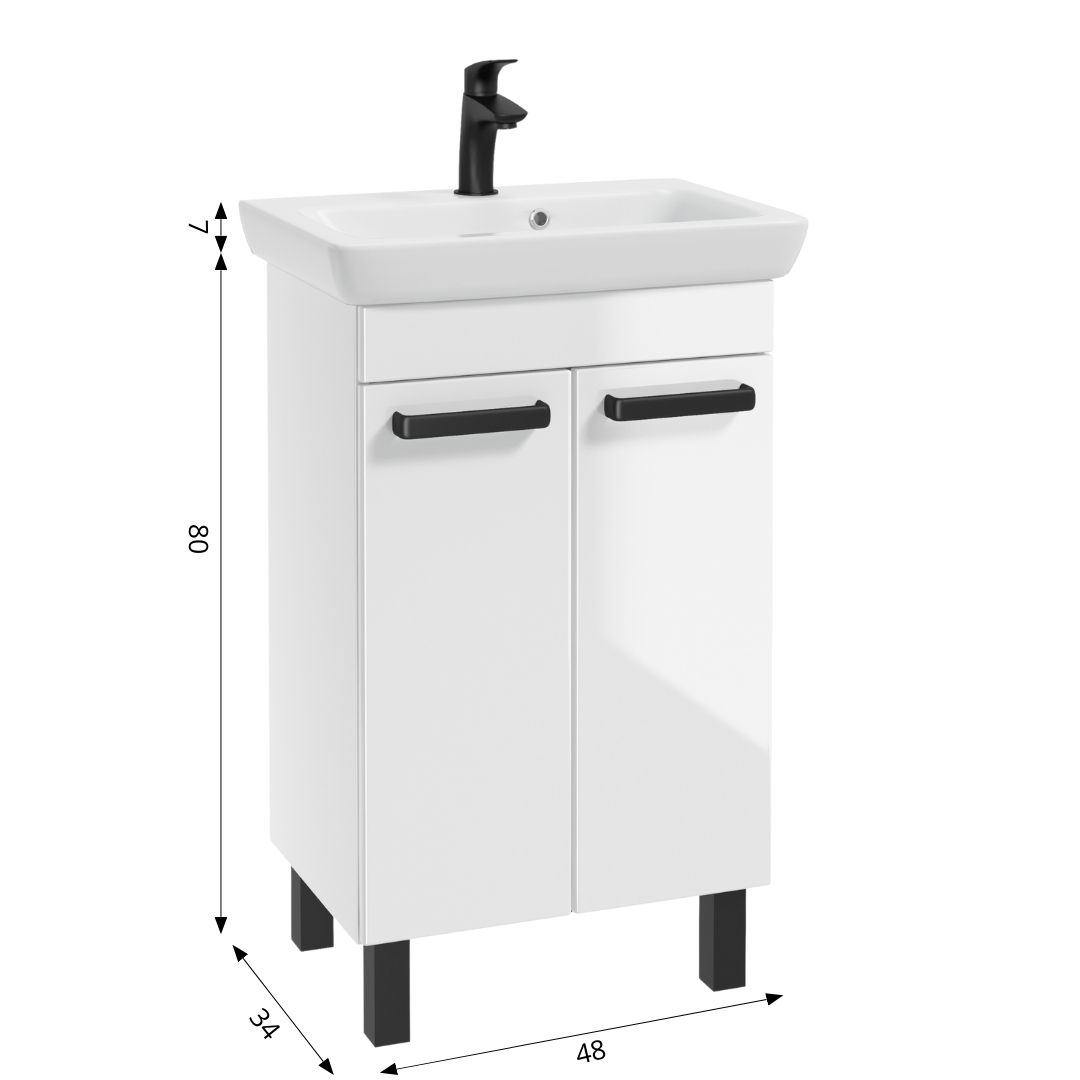 High cabinet on legs CAPRI C32, lacquer white gloss, 32 cm width, pole type. The cabinet has 2 doors and inside shelves with adjustable height. It is equipped with soft closing system DefraSoftClose which increases comfort of everyday use. The cabinet is made of high quality materials, the front and body are lacquered, UV resistant. The cabinet is equipped with chrome rounded handles that increase the comfort of use and aesthetics and chrome square legs. It is possible to mount the cabinet doors so that they open to the right or to the left, as needed.