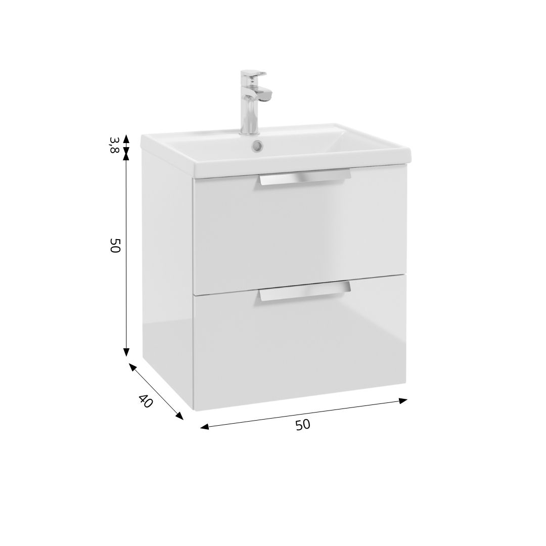 The FARO D50 under-basin cabinet is a great choice for a smaller bathroom. Its small dimensions and depth of 40 cm make it convenient to use, and it also looks elegant and modern. The simple form, refined details and timeless white color on the fronts and body make the furniture perfectly match bathrooms in various styles.