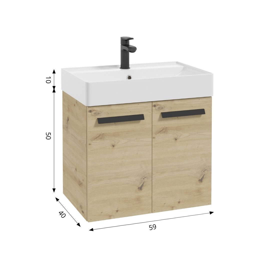 The under-basin cabinet from the FARO collection successfully combines the inspiration of minimalism with the spirit of modern elegance. Simple form, refined details and warm decor in the shade of artisan oak on the fronts and body make the furniture look great in bathrooms in various styles.