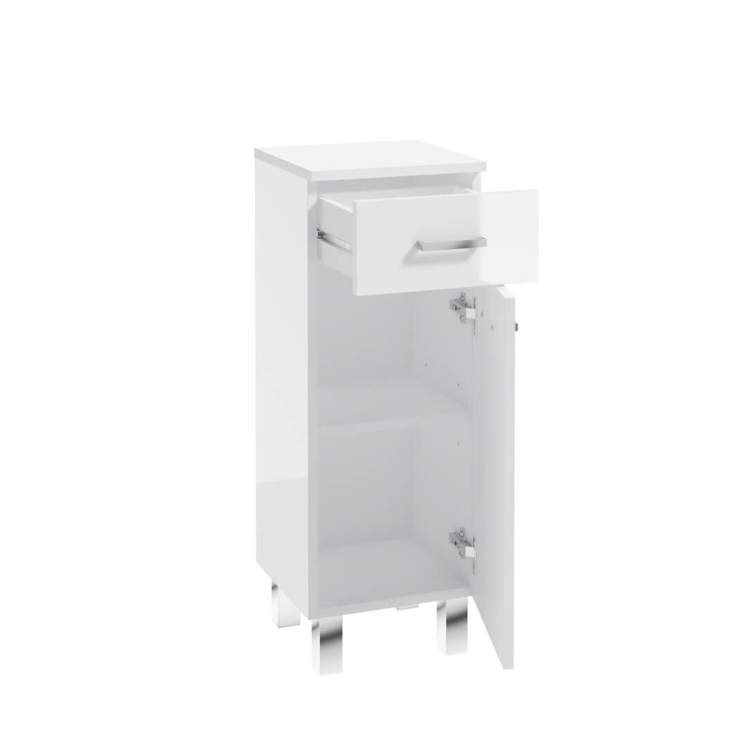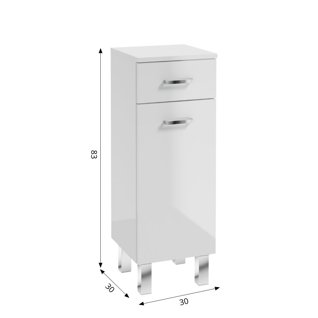 The MEA B30 leg-standing top cabinet has door and one drawer. Fronts and body finished with a light-cured lacquer. The furniture is a perfect complement to the arrangement, with plenty of extra space to store handy bathroom accessories.