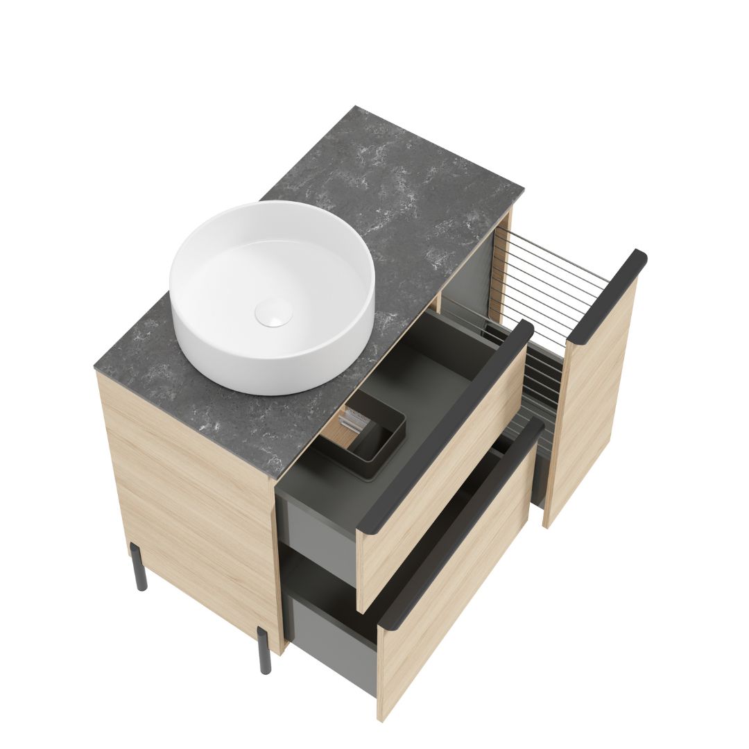 Choose a cabinet, match it with a sink, add a cabinet with a basket, and connect everything under a single countertop. Got a different idea? Great! With Nino modular furniture, you can easily create a set that best suits your needs.