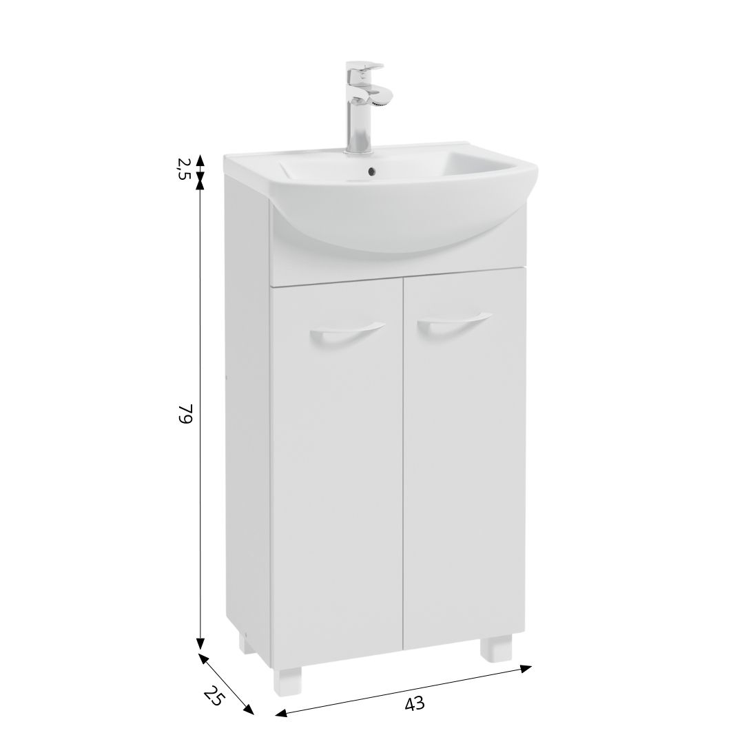 A set: PIK D45 cabinet with Tomaso ceramic washbasin. The cabinet standing on legs has two doors.