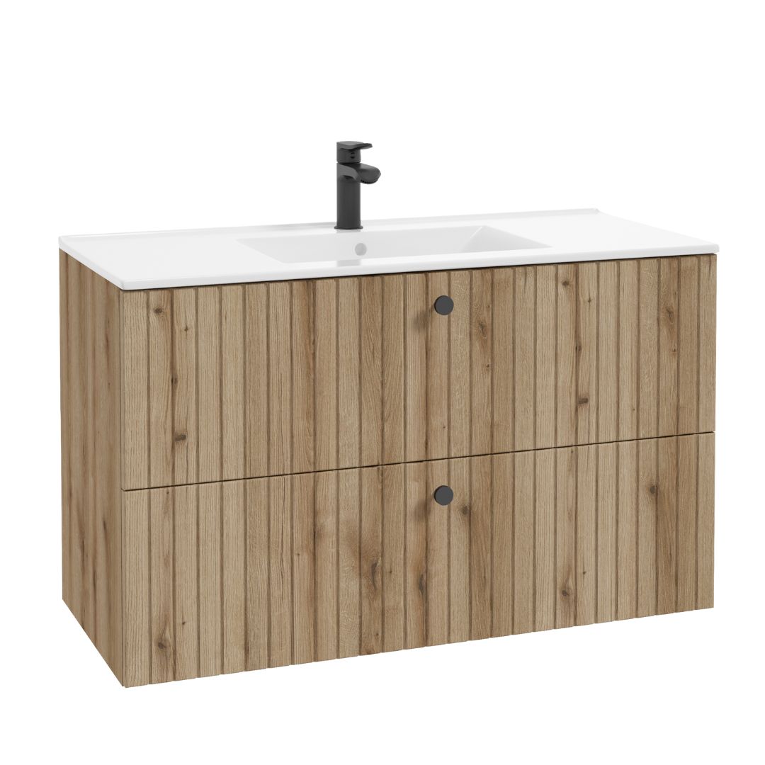 The Rietti D100 two-drawer vanity cabinet is the perfect blend of style and functionality. Its fronts are adorned with subtle vertical millings, giving the unit a modern and unique character. The versatile design makes the cabinet a perfect fit for both modern and classic bathroom designs.