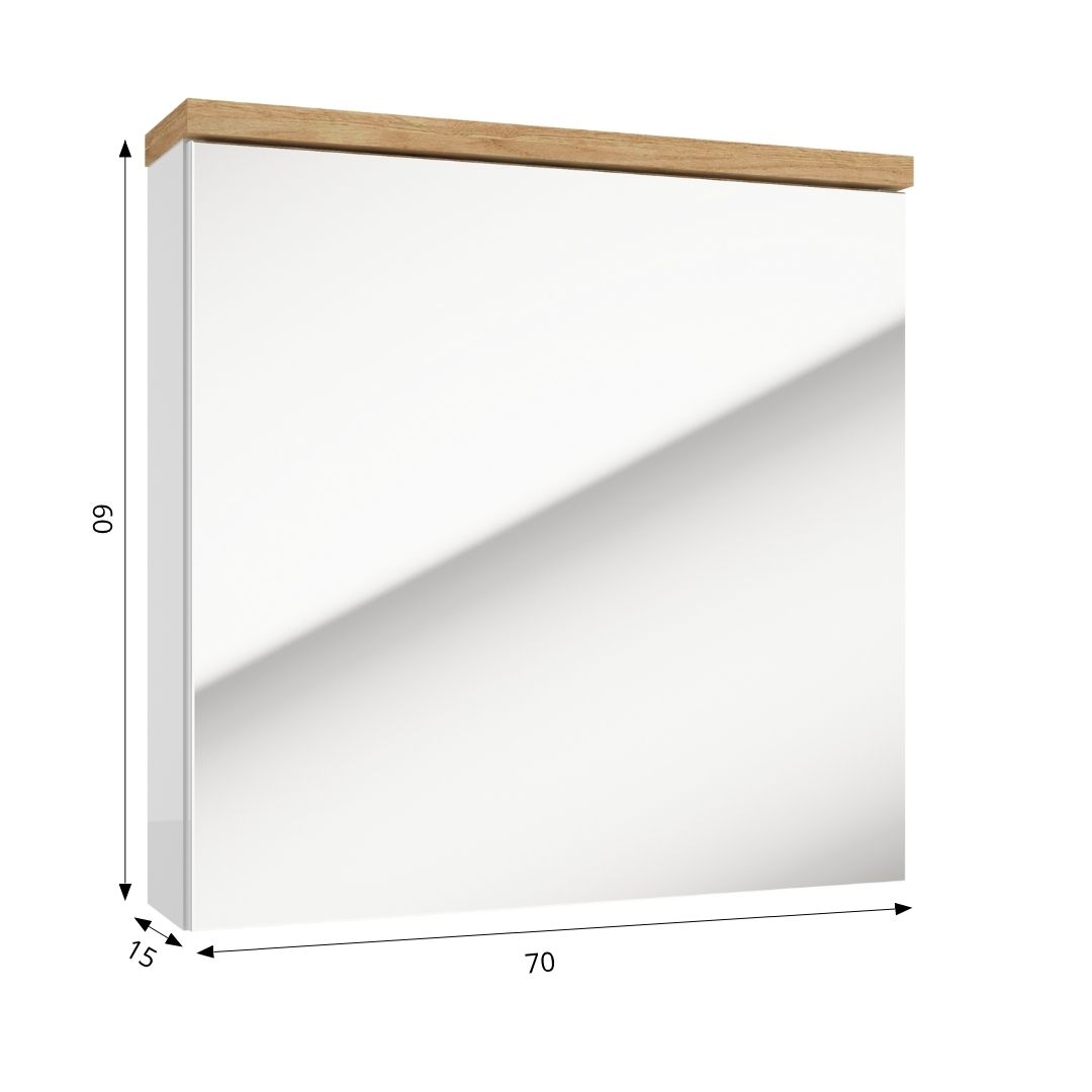 The mirror cabinet from the SPACE SYSTEM collection successfully combines aesthetics with functionality. White, glossy sides, golden oak top, and mirrored front together create a successful and timeless combination of just excellent look.